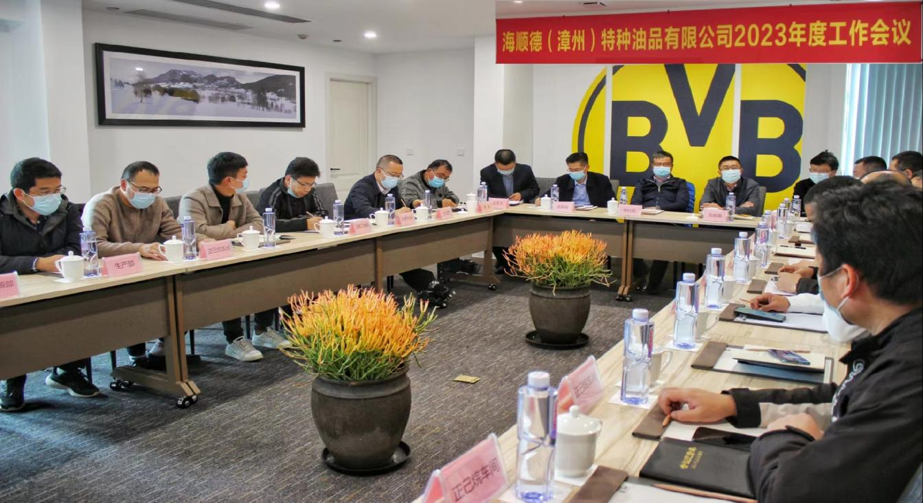2023年2月10日,海順德(漳州)特種油品有限公司召開2023年度工作會議。公司高管、各部門負責(zé)人參加會議,集團領(lǐng)導(dǎo)楊仕銘、劉安良出席了此次會議。